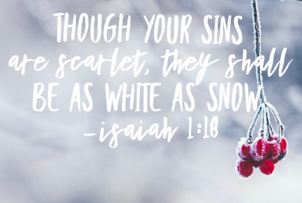 Isaiah says in Chapter 1:18, “Come now let us settle the matter,” the Lord says. “Though your sins are like scarlet, they shall be white as snow; though they are red as crimson, they shall be like wool”.